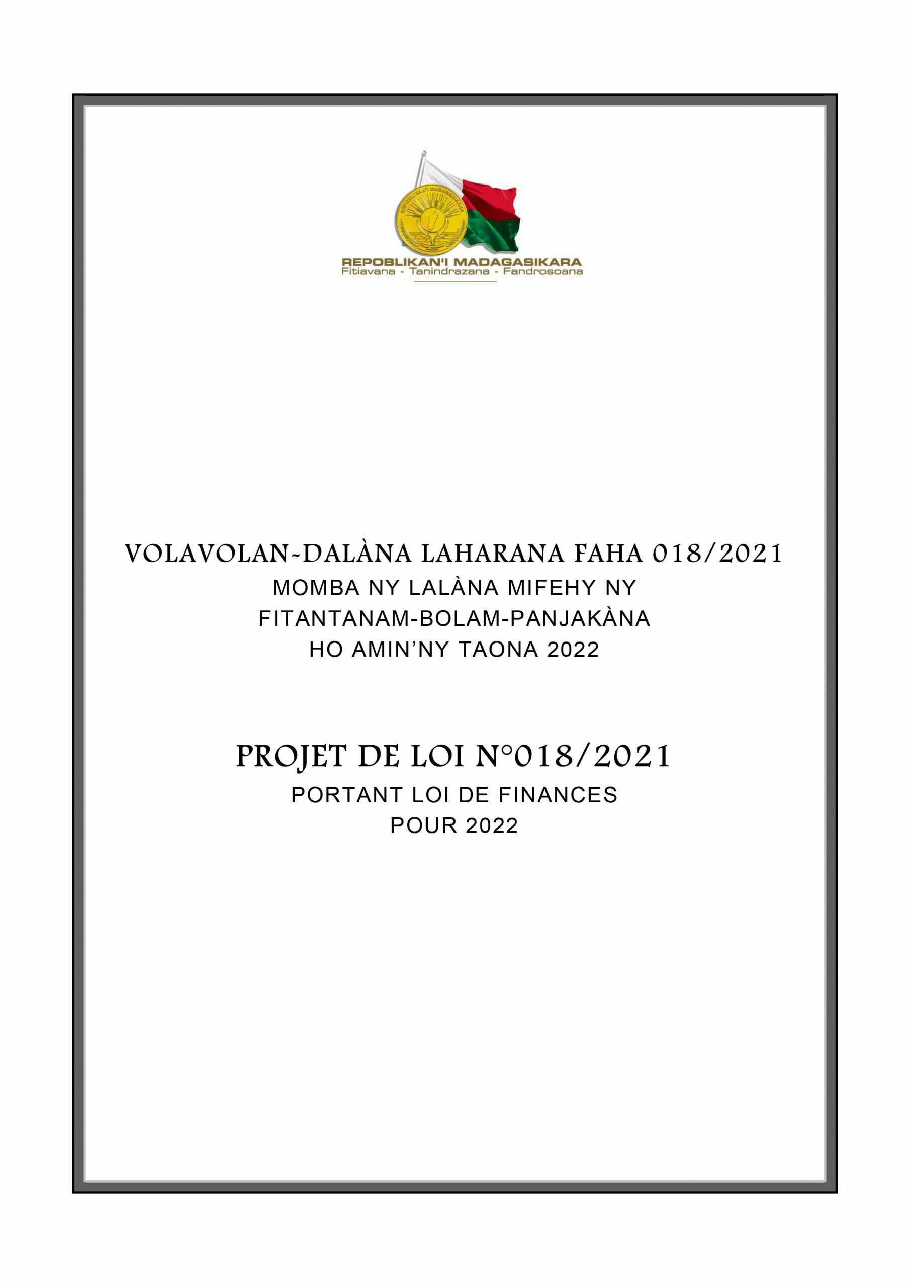 Projet de loi n° 018-2021 portant loi de finances pour 2022 LFI VM —- Télécharger